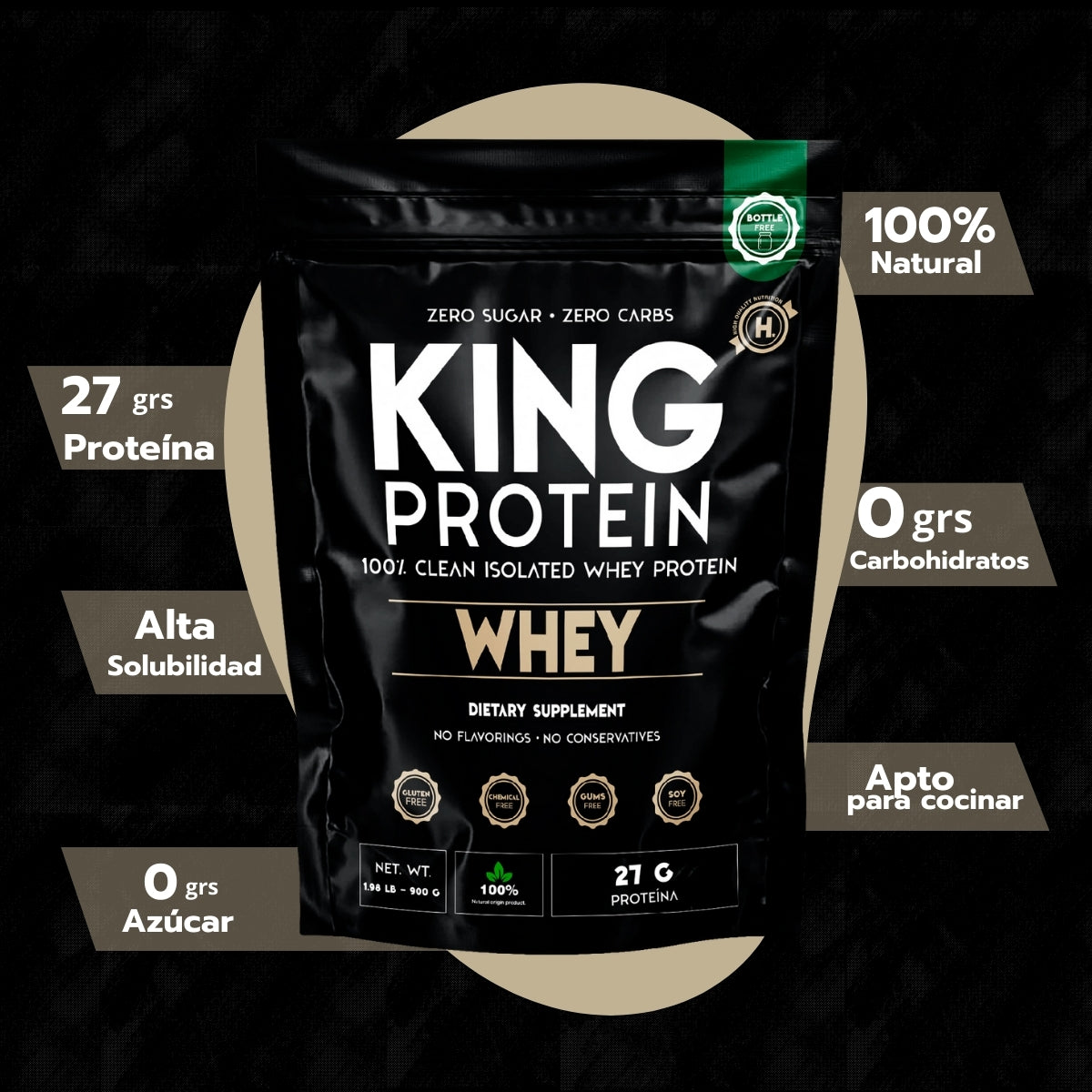 KING Protein | Proteína aislada de suero de leche | 27 g de Proteína | proteína sin sabor | Pre-Post Entrenamiento | 100% Natural 900g