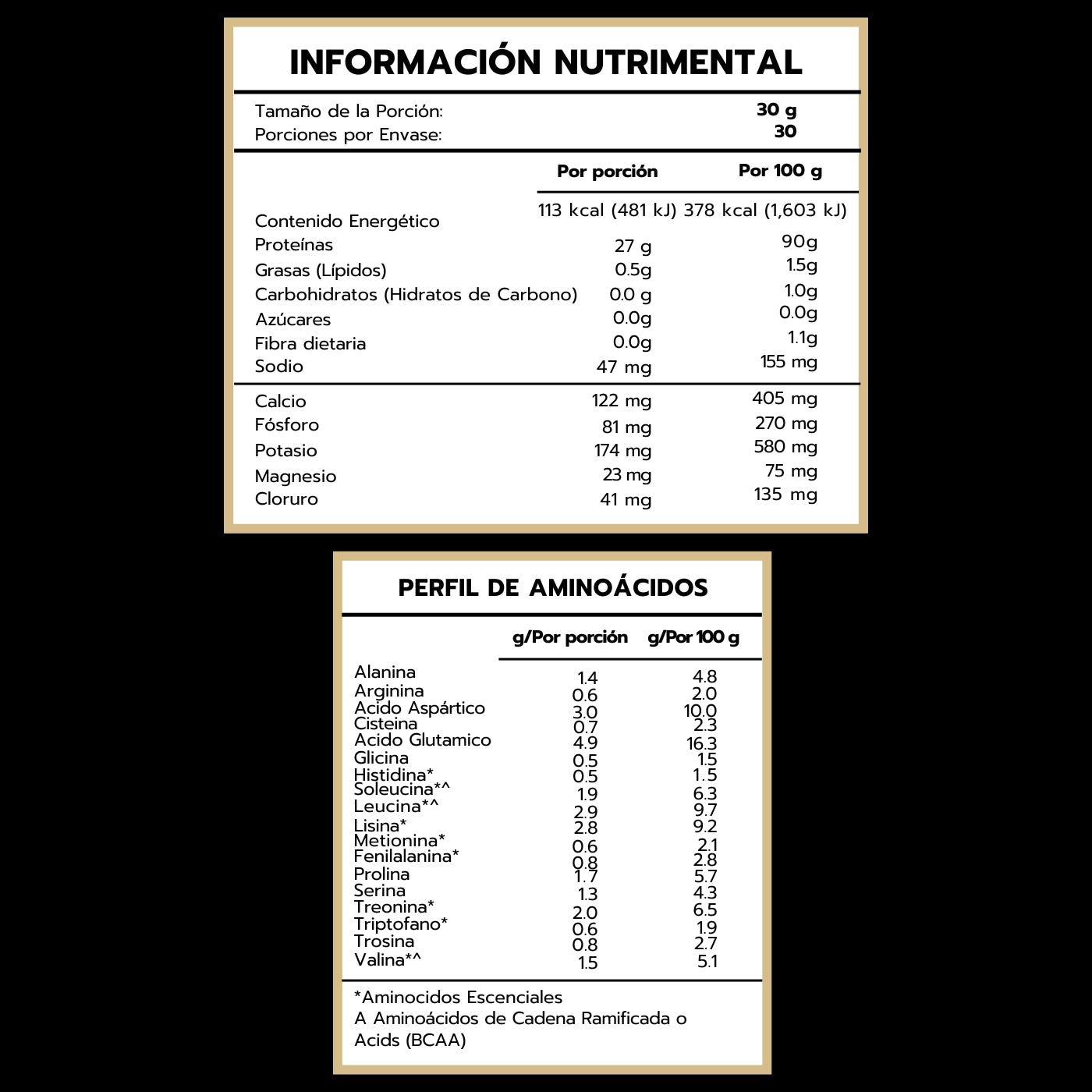 Nuestras proteínas son de suero de leche aislado, lo que garantiza una alta pureza y calidad. Nuestra proteína WHEY aporta 27g de proteína por porción y nuestra proteína WHEY + CREATINA aporta 23g de proteína por porción y 5g de creatina monohidratada.